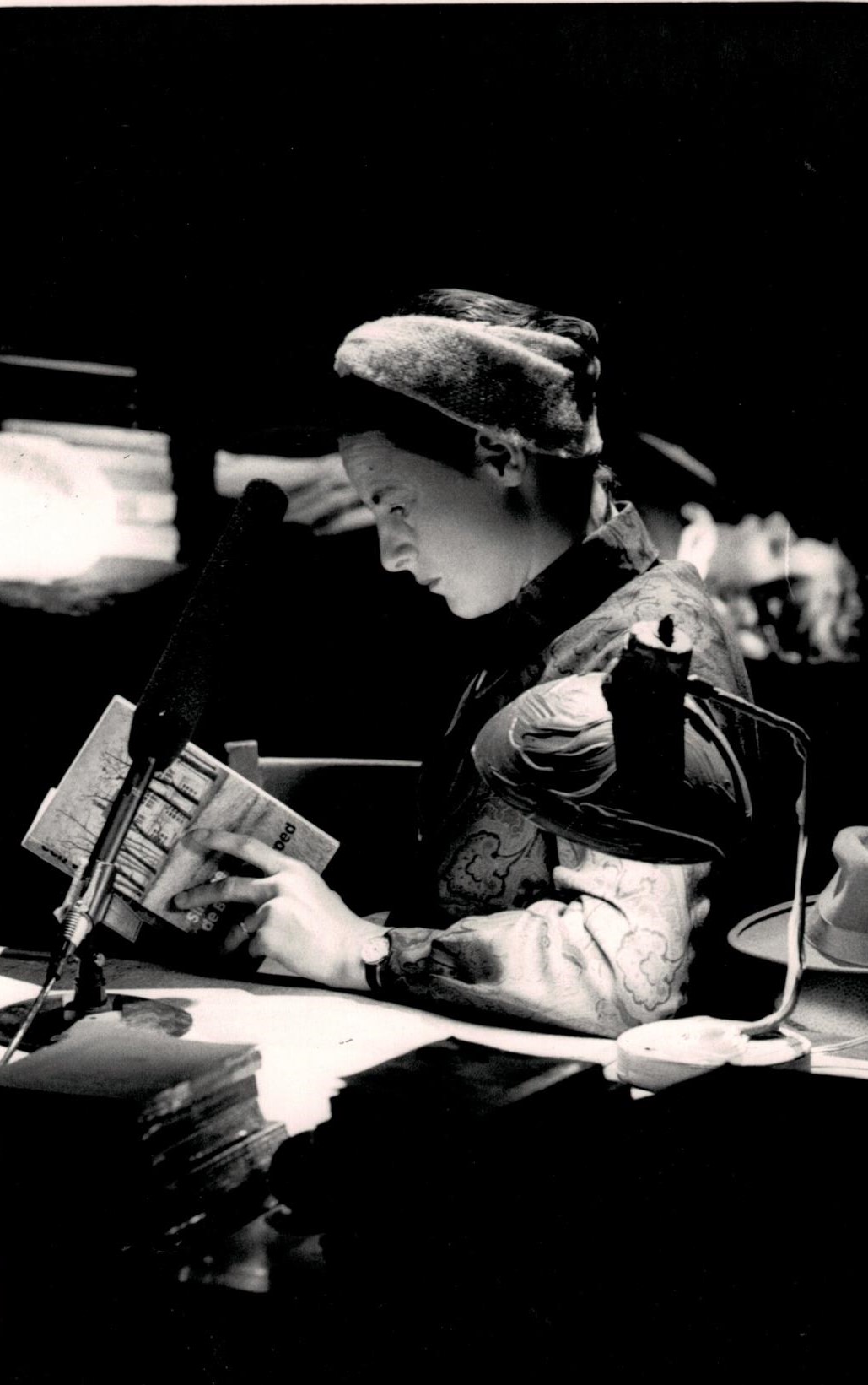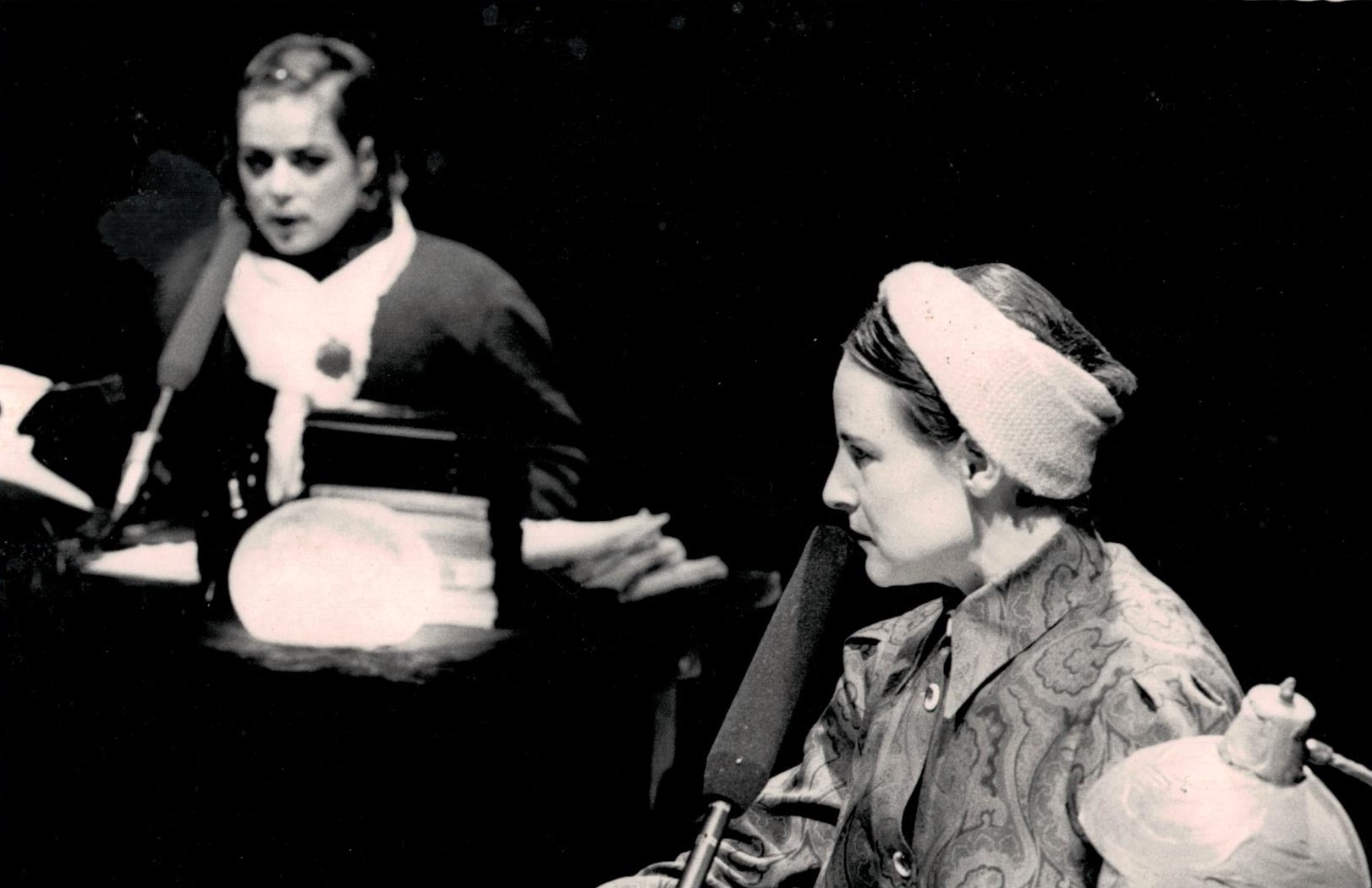 De drie actrices zaten elk aan een eigen tafel met daarop een microfoon, boeken, typemachine of bandrecorder, en andere spullen. Scenograaf Hans Klasema benadrukt dat het hier, meer dan in Om Eleanor, ging om de gewone dingen; vanuit realisme en niet vanuit een design. De actrices stuitten in hun zoektocht naar de vrouwen die ze speelden op voorwerpen die hen daarbij hielpen. Die voorwerpen werden het voornaamste element in het decor. Tussen de tafels door drapeerde Hans een vijftig meter lange dikke scheepskabel, als verbinding tussen de drie auteurs.